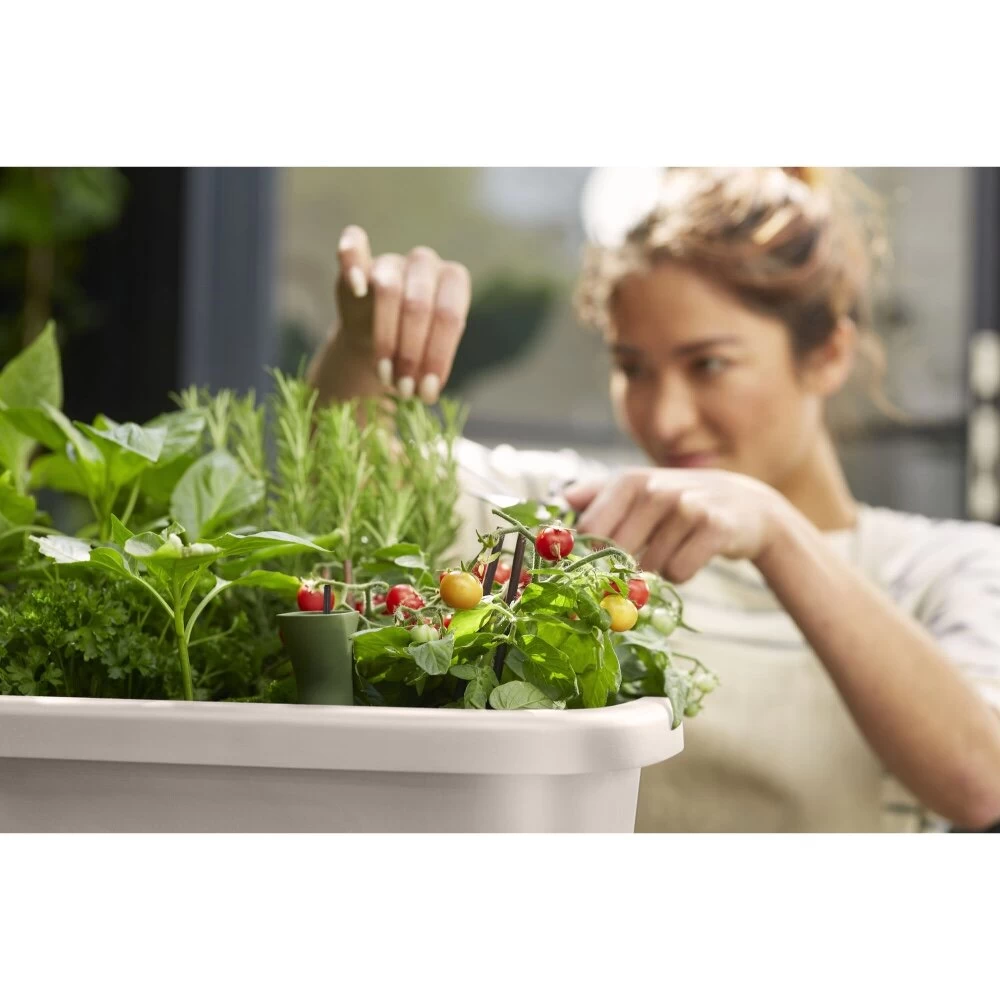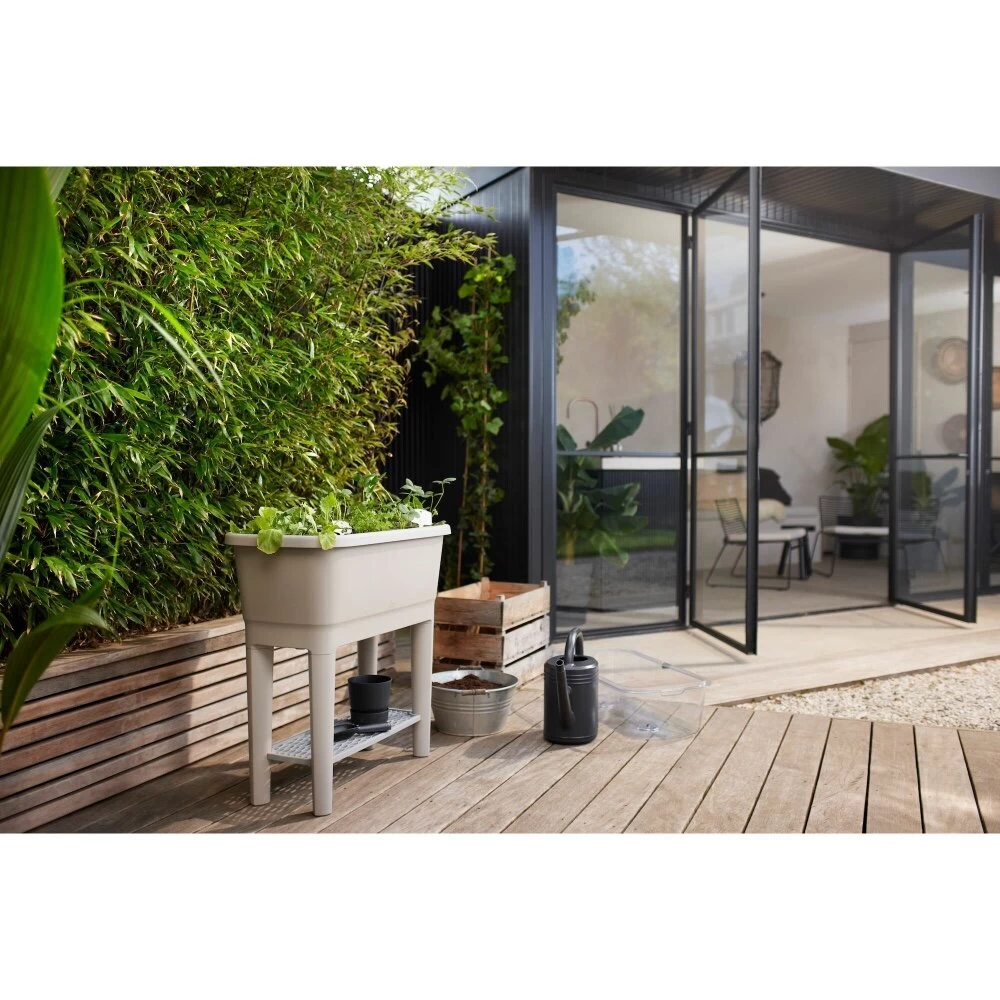 Met de noa kweektafel kweek je eenvoudig je eigen groenten, fruit en kruiden. De kweektafel heeft een geintergreerd watersysteem inclusief een watermeter. Daarnaast komt deze kweektafel ook met een bijpassend kweekhuis en onder de tafel bevindt zich een handige tray. Deze kweektafel is gemaakt van 100% gerecycled plastic, geproduceerd met windenergie en ook nog eens 100% recyclebaar. Daarnaast ook vorstbestendig en verkleurt niet.Alles bij de hand Op ideale werkhoogte kweek je eenvoudig groenten, fruit en kruiden. Of het nu tomatenplanten zijn, sla of basilicum, deze kweektafel op poten is groot genoeg om meerdere planten in te kweken. Onder de tafel, tussen de poten, bevindt zich een handige tray om altijd de juiste kweekaccessoires bij de hand te hebben. Met behulp van de afneembare poten berg je de kweektafel, als het kweekseizoen voorbij is, eenvoudig weer op.Inclusief kweekhuis Het kweekhuis zorgt ervoor dat jouw zaden en plantjes beschermd worden tegen vogels, regen en direct zonlicht. De ventilatie schijfjes creëren een optimaal klimaat en zorgen ervoor dat jouw plantjes onder goede temperatuur en luchttoevoer kunnen groeien. Nooit te natte voetenDe noa kweektafel heeft een eenvoudig watersysteem met een reservoir. De watermeter geeft precies aan wanneer je het water bij moet vullen. Met behulp van de afsluitdop kun je af en toe overmatig water laten weglopen, zodat de wortels van jouw planten gezond blijven. Al deze handige functies komen samen in de mooie en praktische noa kweektafel.