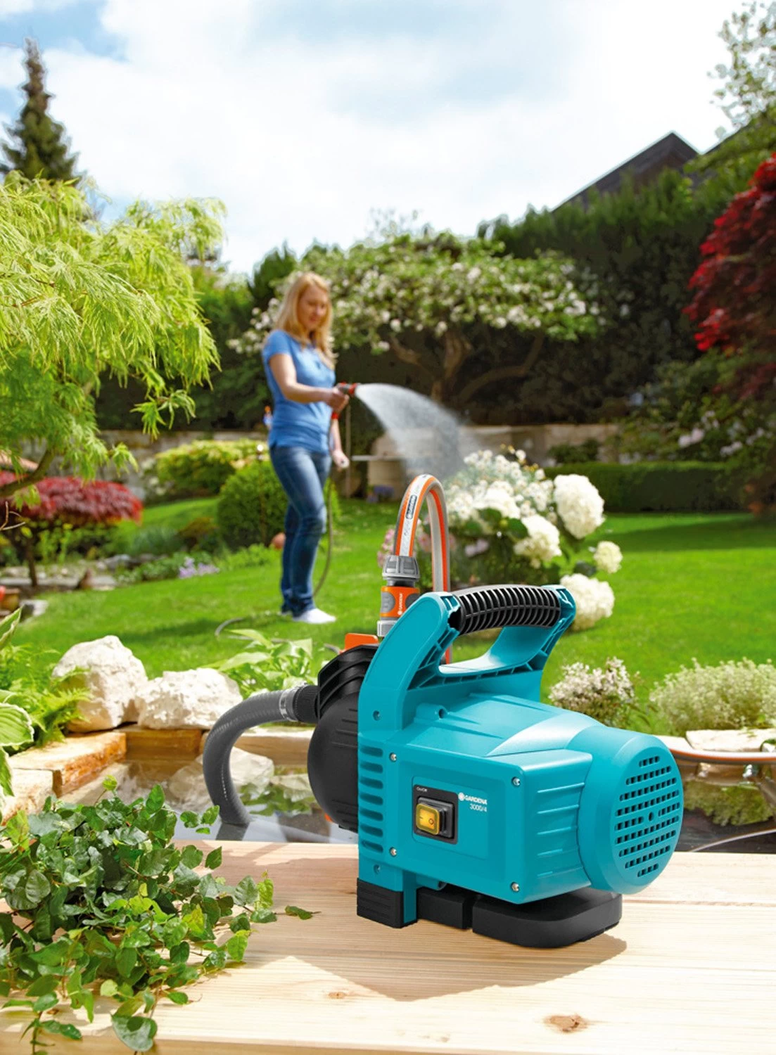 De compacte GARDENA Besproeiingspomp 3000/4 is het optimale instapmodel en kan worden gebruikt voor uiteenlopende doeleinden. Door het grote zuigvermogen en de hoge druk is deze pomp ideaal voor besproeiing, drukverhoging of het over- of verpompen van kraan-, regen- of chloorwater voor zwembaden. De pomp is licht en robuust, en eenvoudig in gebruik. Een grote vulopening maakt het vullen van de pomp voor het eerste gebruik eenvoudig en dankzij een ergonomische handgreep is de pomp eenvoudig te verplaatsen. De rubberen voetjes zorgen dat de pomp stabiel staat en met een laag geluids- en trillingsniveau werkt. Ter bescherming van de pomp tegen vorst en dus schade is de pomp voorzien van een aftapschroef voor het aftappen van het achtergebleven water in de pomp. Voor een lange levensduur vertrouwt GARDENA op hoogwaardige materialen. De keramische bescherming en een dubbele afdichting tussen de motor en het loopwerk van de pomp zorgen voor een veilige werking en voorkomen schade aan de pomp. Een thermische beveiligingsschakelaar beschermt de motor tegen overbelasting. Let op: pompen van GARDENA zijn niet geschikt voor het verpompen van zout water, agressieve of licht ontvlambare middelen of voedingsmiddelen.