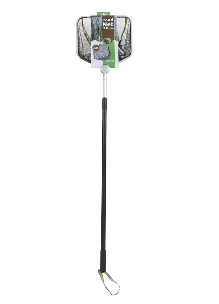 Het Pond Net assortiment van Velda bestaat uit diverse soorten en maten schepnetten en zijn inclusief een telescopische steel. De netten zijn op een bijzondere manier en onzichtbaar in het frame verwerkt. Daarmee is er een zeer goede verbinding verkregen tussen het netmateriaal en het frame, terwijl daarmee netbeschadiging tot het verleden behoort. De opvallende groene belijning in het net bevordert de zichtbaarheid tijdens het gebruik in de vijver. De steellengte is 180 cm.De Daphnia netten zijn fijnmazig en zijn uitermate geschikt om zelfs de kleinste vuildeeltjes uit het water te verwijderen, zoals stuifmeel en kleine takjes/bladeren. De grofmazige netten zijn geschikt voor het uitzetten en vangen van vissen, maar ook voor allerlei klusjes, zoals het verwijderen van bladeren. Kies de vorm die het beste past bij het gebruik; vierkant of 3-hoekig voor strakke vijvers, rond voor bijvoorbeeld natuurvijvers. Produkt Afmeting Kleur Pond Net Rond 35 cm zwart Pond Net Rond 46 cm zwart Pond Net Vierkant 35 cm zwart Pond Net Vierkant 46 cm zwart Pond Net Driehoek 40 cm zwart Pond Net Daphnia vierkant 35 cm wit Pond Net Daphnia rond 35 cm wit Bovenstaande afmetingen zijn verkrijgbaar