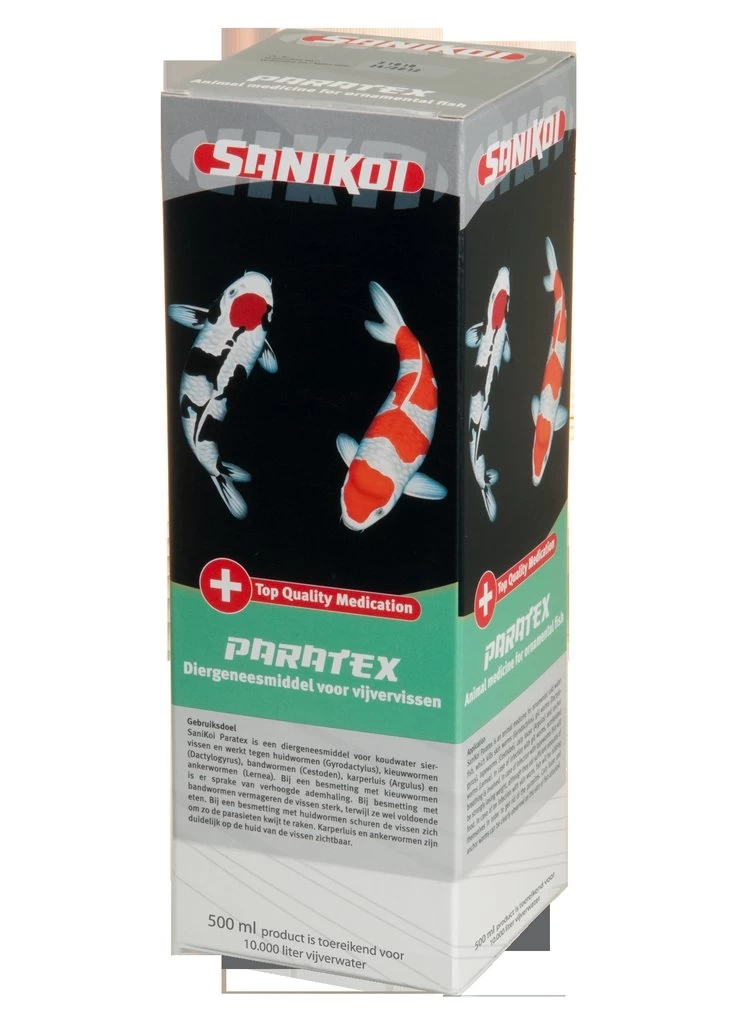 Sanikoi Paratex is een diergeneesmiddel voor koudwater siervissen en werkt tegen karperluis (Argulus) en ankerwormen (Lemea). Deze zijn duidelijk zichtbaar op de huid van de vissen.