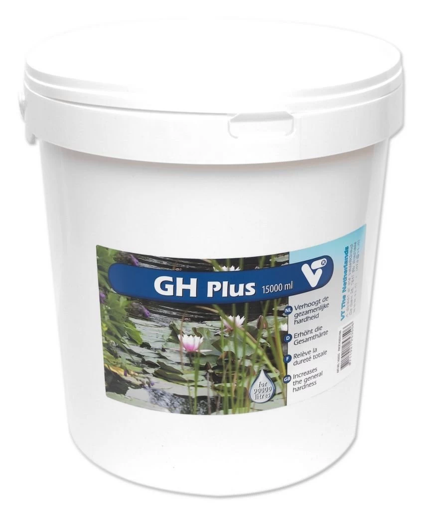 Stimuleert de groei van zuurstofplanten en de ontwikkeling van micro-organismen. GH Plus is een zeer werkzaam middel om de hardheid van het vijverwater te verhogen.Een goede waterhardheid is noodzakelijk voor een stabiele en gezonde vijver. Bij een gezamenlijke hardheid (GH) van minimaal 6° DH kunnen zuurstofplanten en microorganismen zich goed ontwikkelen. Een goede GH-waarde voorkomt verzuring van de vijver. Vooral regenwater verlaagt de GH waarde en werkt verzuring in de hand.Regelmatige controle van de waterhardheid is dan ook gewenst. GH Plus verhoogt probleemloos de hardheid van het vijverwater. Het werkt snel en vertroebelt het water niet.